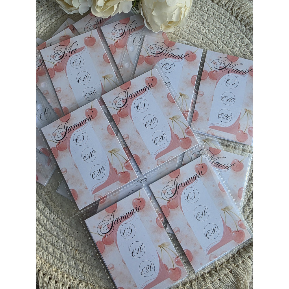 Voorblad kan je kan je bijhouden welke maand je hoeveel heb gespaard
