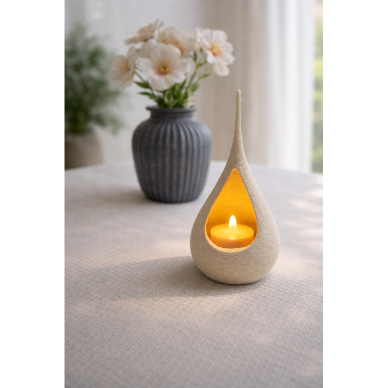 Breng sfeer in huis met deze moderne, 3D-geprinte waxinelichthouder. Het organische druppelvormige design en de subtiele textuur zorgen voor een stijlvolle en rustige uitstraling. In combinatie met een (LED) waxinelichtje ontstaat een warme, zachte gloed – perfect voor elk interieur.