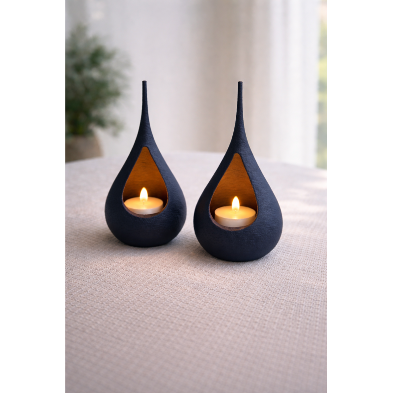Breng sfeer in huis met deze moderne, 3D-geprinte waxinelichthouder. Het organische druppelvormige design en de subtiele textuur zorgen voor een stijlvolle en rustige uitstraling. In combinatie met een (LED) waxinelichtje ontstaat een warme, zachte gloed – perfect voor elk interieur.